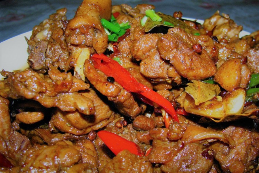 Allegedly, red braised pork was Chairman Mao’s favourite dish, and it shows on the menu of many restaurants as Mao’s red braised pork. Pork belly is the key of the dish, along with ginger, garlic, chili peppers, sugar, spices, cooking wine, and light and dark soy sauce.